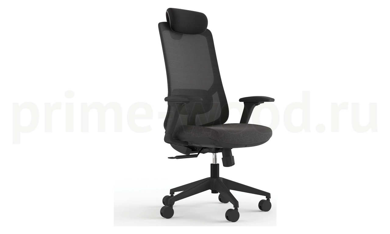 Кресло с высокой сетчатой спинкой и сиденьем из ткани